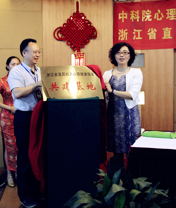 日前,浙江省直机关心理健康服务基地、中国科学院心理研究所与杭州市五云山疗养院合作建立的公职人员心理健康促进共建基地在五云山疗养院正式揭牌。浙江省委副秘书长、省直机关工委书记施利民、浙江省直机关工委副书记鲁维明、杭州市委副秘书长、杭州市直机关工委书记占仁义、杭州市卫生局党委委员、副局长孙雍容、杭州市直机关工委副书记朱建林等一行出席了揭牌仪式,并对杭州机关党员干部心理健康促进工作的开展情况进行了调研。